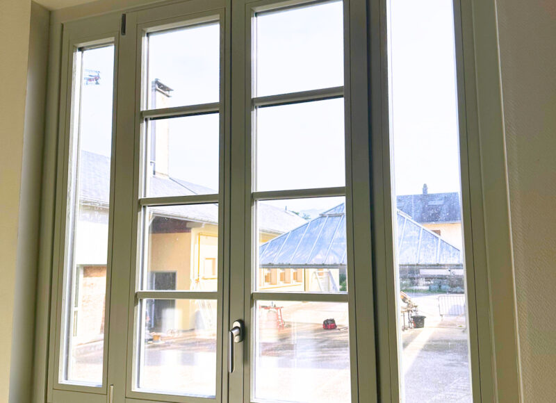 Du fait de la construction en plusieurs phases, mais aussi de quelques rénovations conséquentes, le bâtiment était équipé de fenêtres bois simple vitrage très anciennes et sans aucune isolation (Uw >5 W/m².K), de simples vitrages plus récents (année 80) ou des premiers doubles vitrages avec une performance faible (Uw >3 W/m².K).