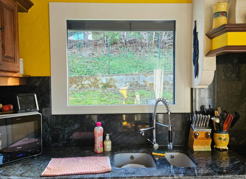 Imperium Ouvertures est intervenu à Challes-les-Eaux, en Savoie, pour la pose d’une porte-fenêtre et d’un châssis fixe aluminium dans la pièce de vie.