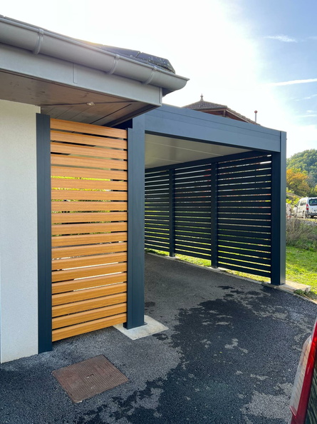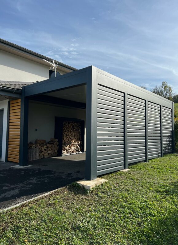 À Chilly, en Haute-Savoie, Imperium Ouvertures a installé un carport aluminium sur mesure adossé à l’habitation, offrant une protection efficace pour les véhicules et autres équipements extérieurs.
