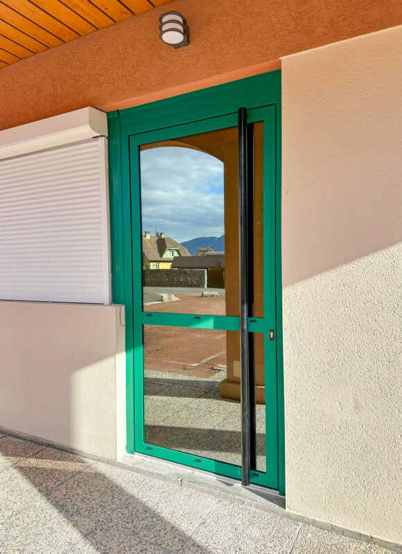 Imperium Ouvertures est intervenu à Faverges-Seythenex, en Haute-Savoie, pour remplacer une ancienne porte peu performante par une porte d’entrée aluminium vitrée.