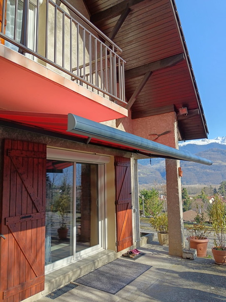Imperium Ouvertures est intervenu à La Terrasse, en Isère, pour installer un store banne rouge, conçu pour protéger une terrasse fortement exposée au soleil.