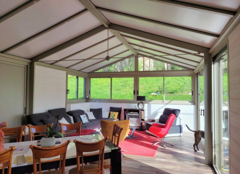 Cette véranda s’intègre parfaitement à l’architecture de la maison tout en apportant un espace supplémentaire confortable et utilisable toute l’année.