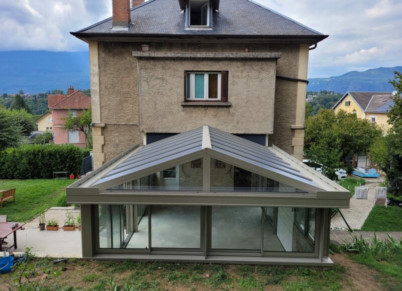 Imperium Ouvertures a réalisé l’installation d’une véranda aluminium à Aix-les-Bains, en Savoie. Conçue par le fabricant AKENA VERANDA, cette extension permet d’agrandir la maison tout en créant une pièce de vie lumineuse ouverte sur le jardin.