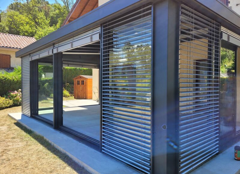 Ce dispositif améliore le confort intérieur tout en apportant une dimension esthétique contemporaine à la structure aluminium de la véranda.