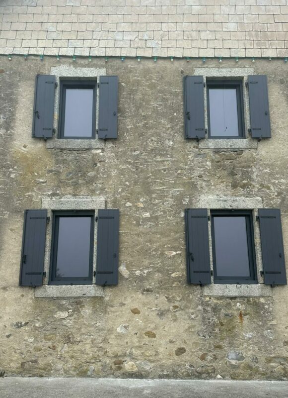 Les volets ont été installés sur plusieurs ouvertures de la façade, apportant une solution durable et esthétique adaptée à l’architecture du bâtiment.