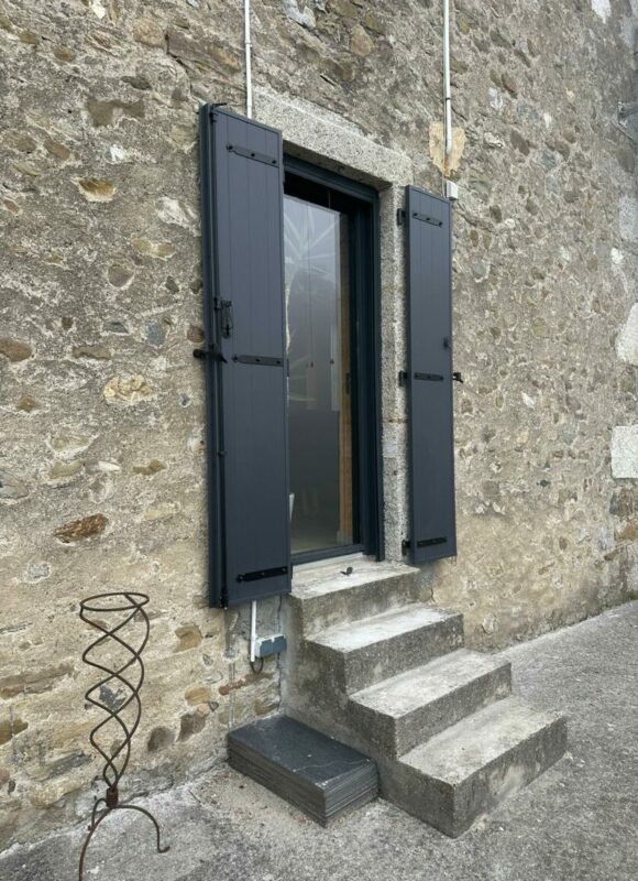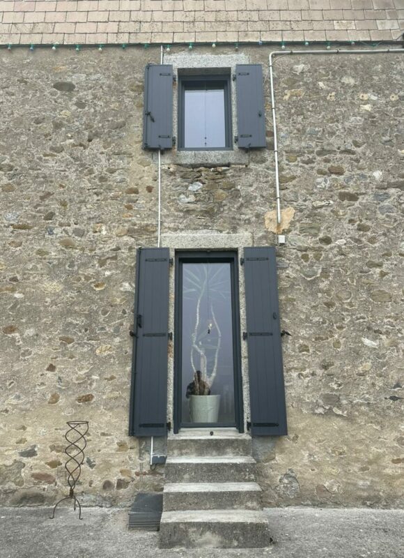 Les volets battants ont été posés sur une façade en pierre, ce qui nécessite une intégration soignée afin de respecter l’esthétique du bâtiment.