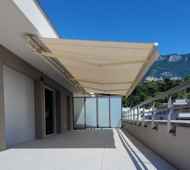 Le store banne agit comme un premier bouclier thermique pour votre logement. En protégeant vos baies vitrées du rayonnement solaire direct, il évite l’effet « serre » à l’intérieur. Résultat ? Vous gardez la fraîcheur dans votre salon sans forcément devoir recourir à une climatisation énergivore. C’est un atout majeur pour l’efficacité énergétique de votre maison, particulièrement dans les secteurs ensoleillés de Savoie, Haute-Savoie et Isère.